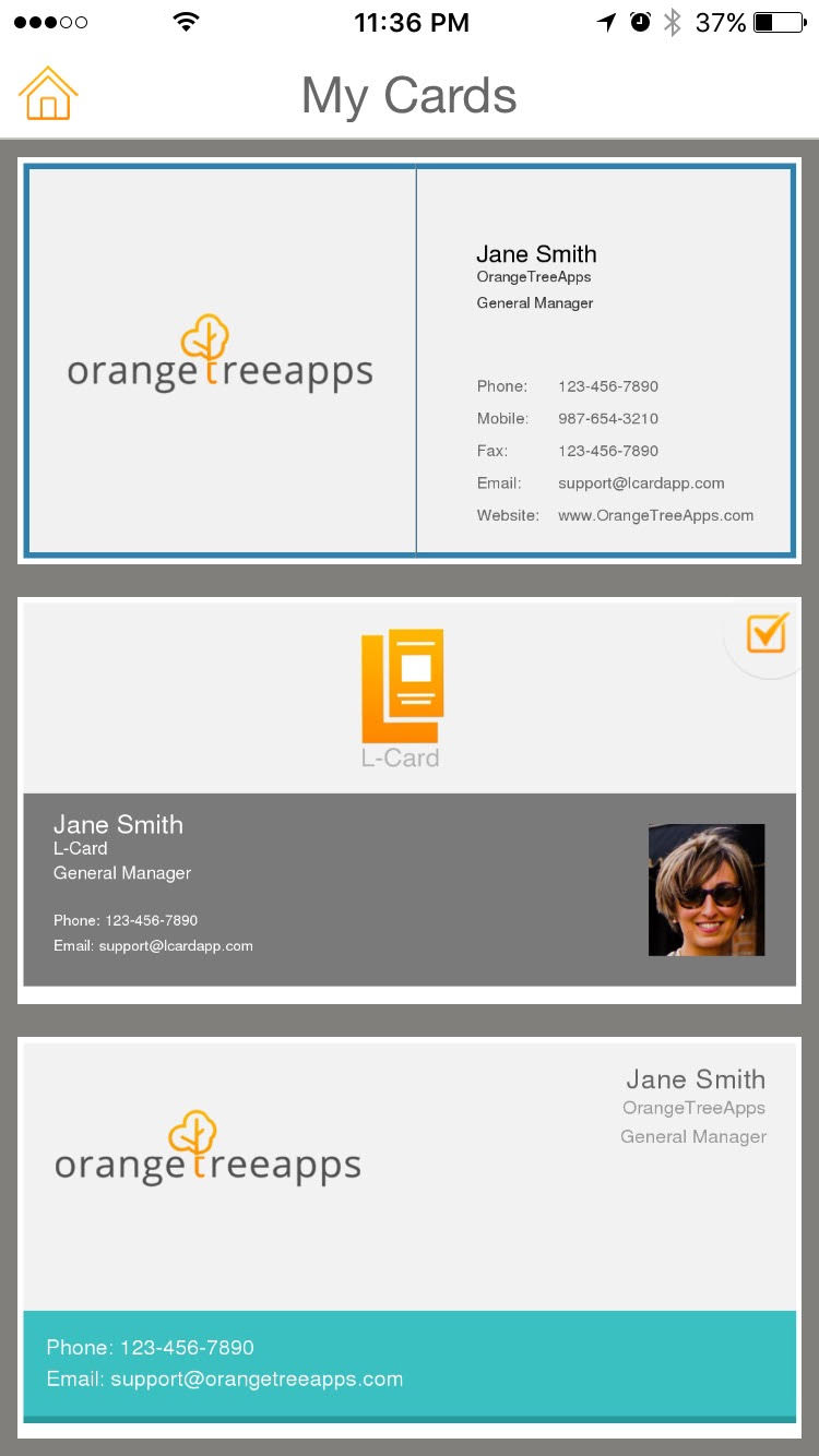You will be able to share, receive and store other peoples L-Cards, and even go a step further and categorize them to fit your needs. No more forgetting or running out of business cards when you need them the most.