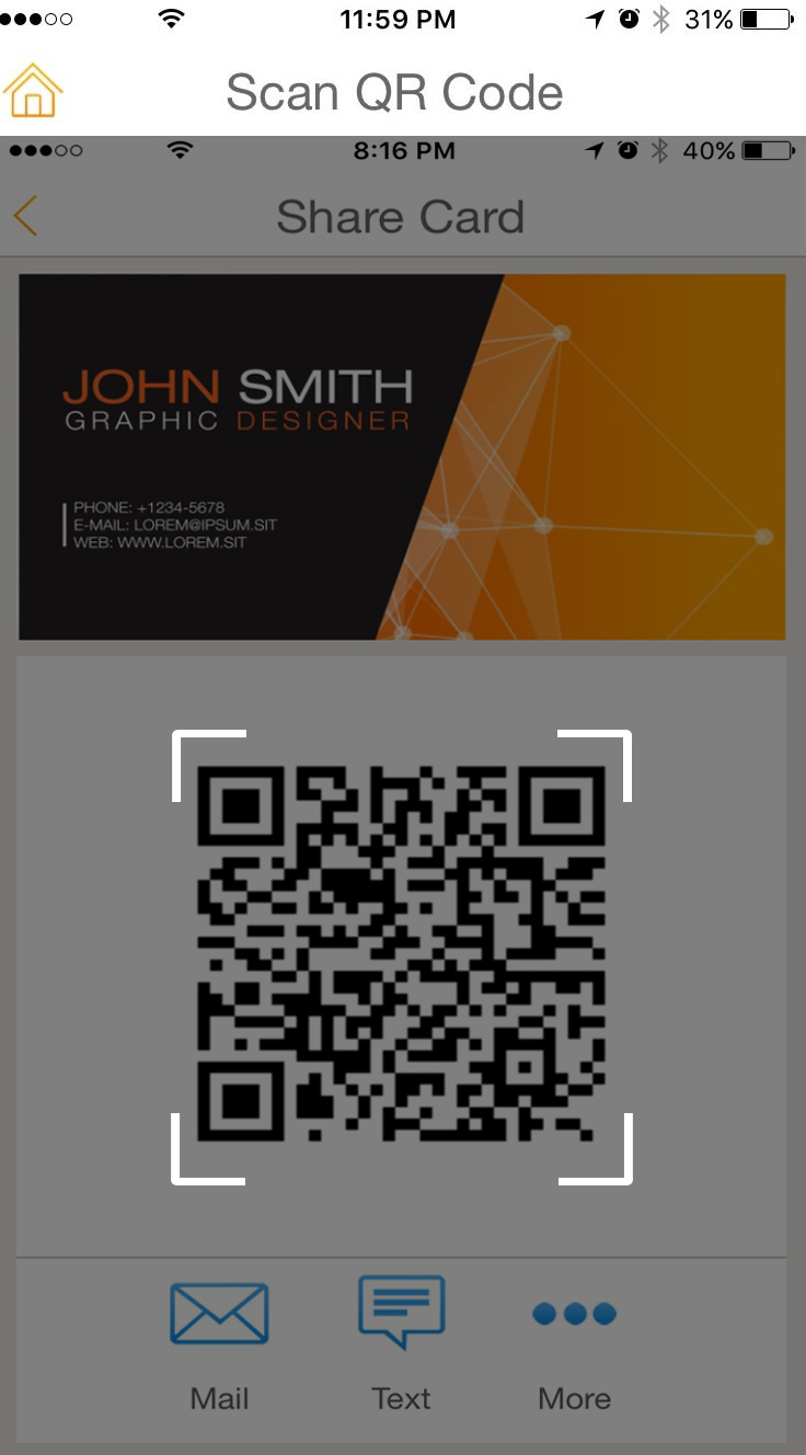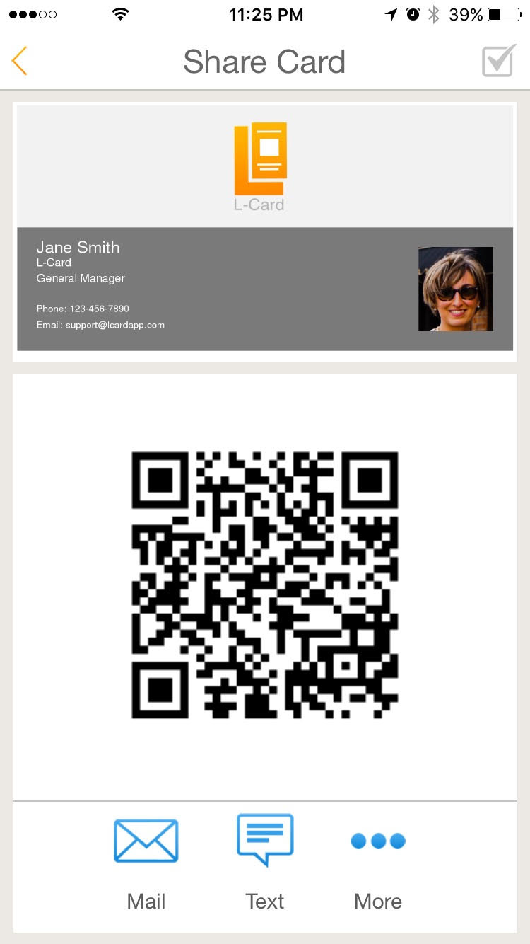 Allows L-Card users to share cards between each other effectively using either QR code, text, email, social media, and much more.