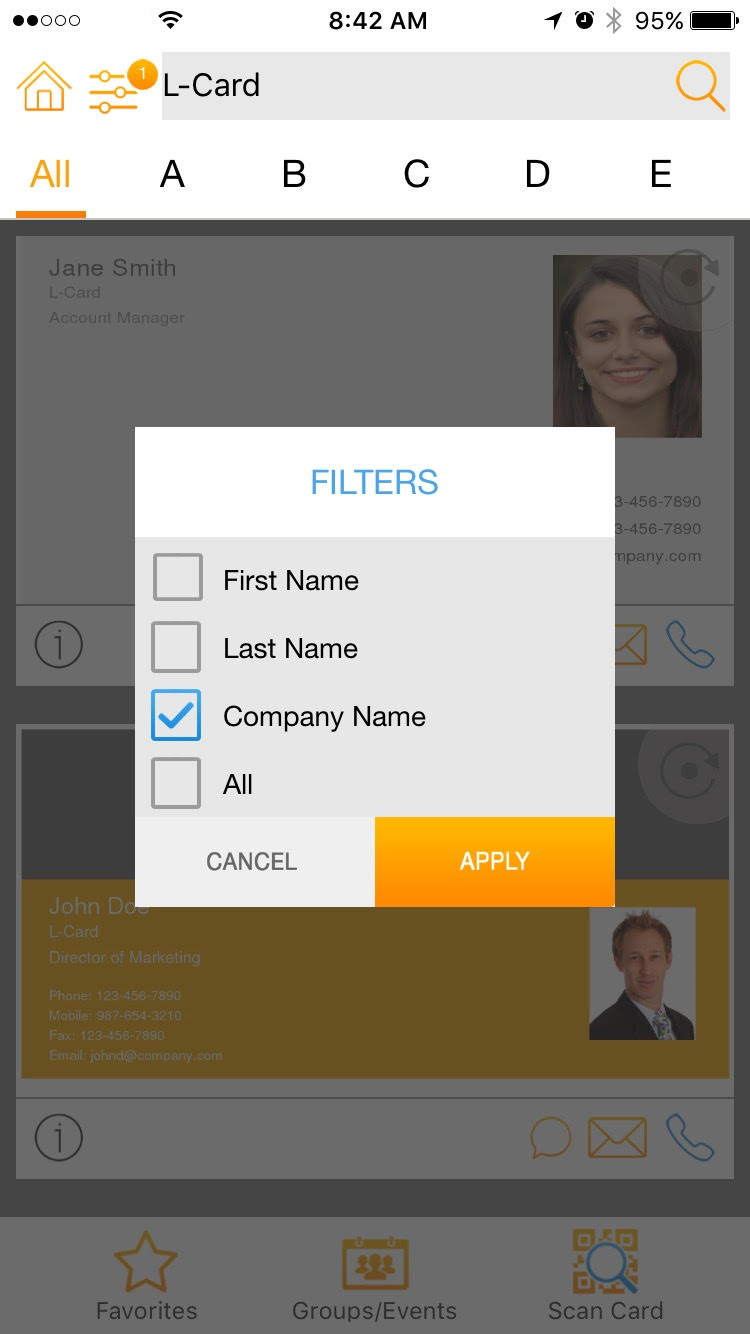 Create folders and categorize L-Cards for your favorite groups and events such as different trade shows, conferences, and much more.